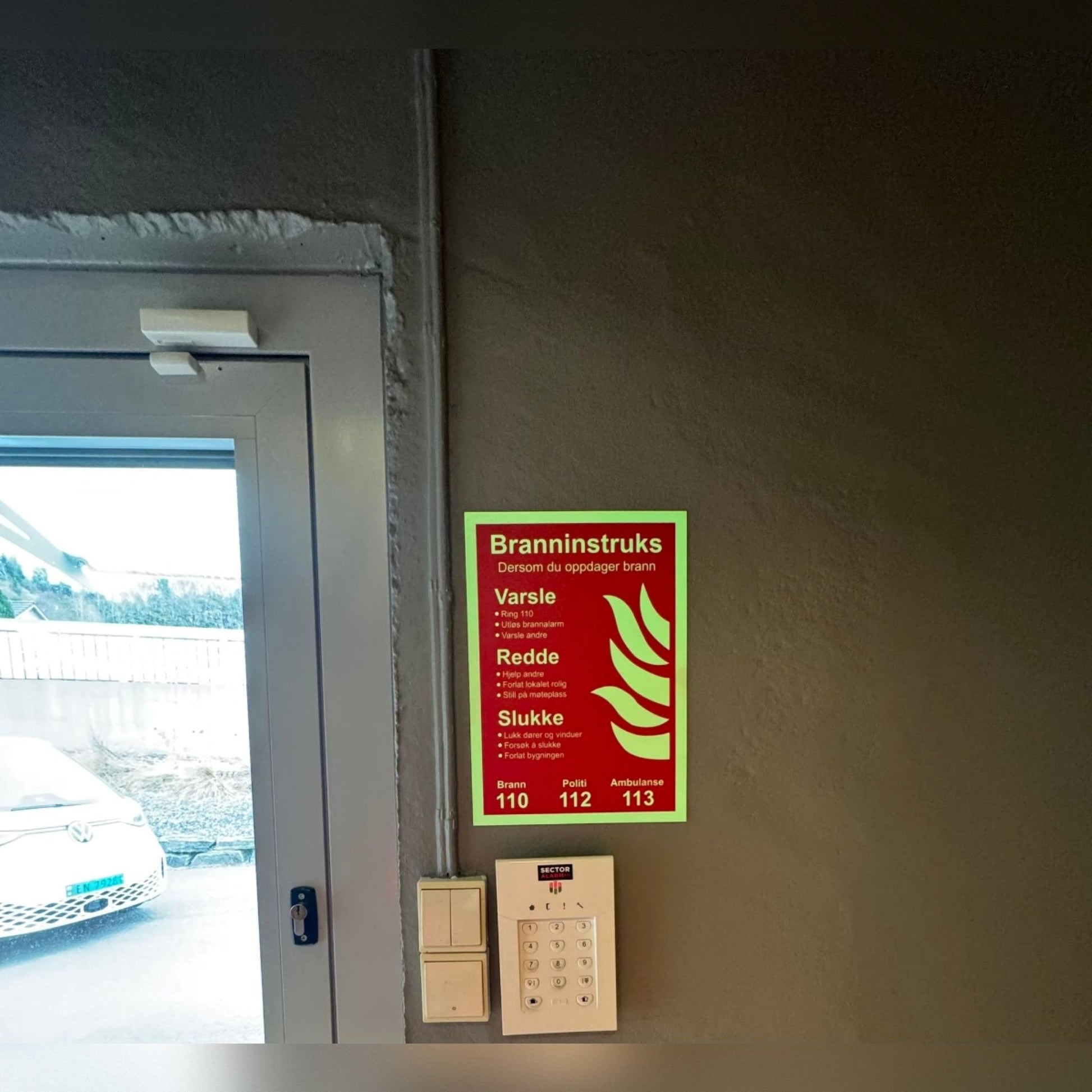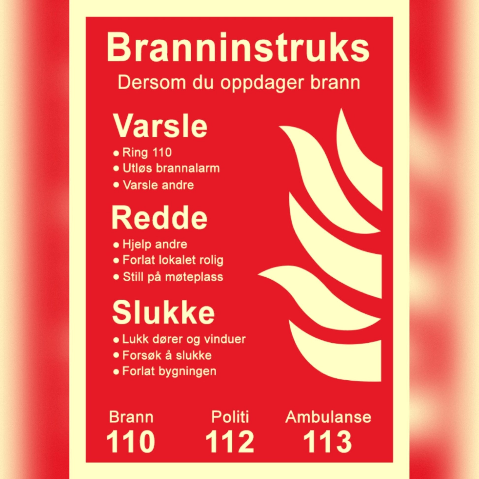- Piktogram/Tekst: Branninstruks