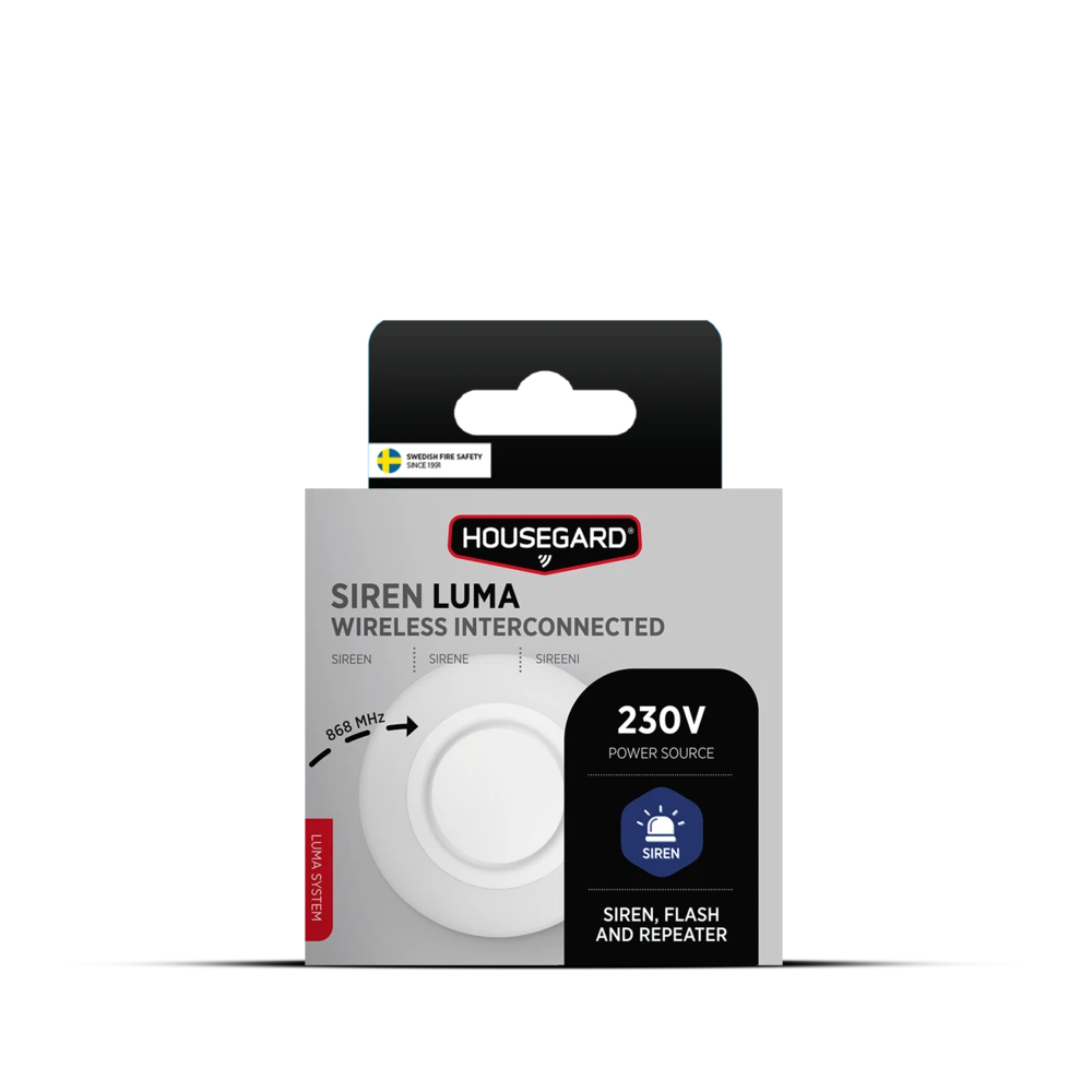 Housegard Luma, trådløs sirene, 230V inkl. batteribackup