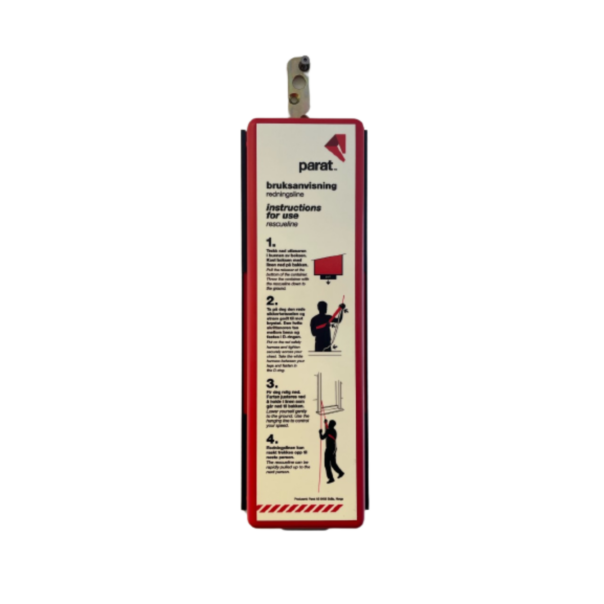 Parat redningsline benyttes for å tilrettelegge sikker rømning på lik linje med utfellbar brannstige, og har mange fordeler for å sikre ein trygg evakuering